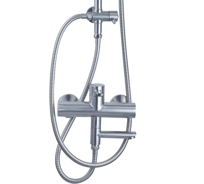 沐浴柱由不銹鋼整體壓鑄成型,簡潔時尚、結實耐用。上下呼應的斜角設計,讓您的浴室更具美感,又避免了金屬銳角對人體的意外碰撞,,彰顯人性關懷。