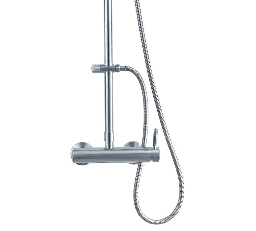 沐浴柱由不銹鋼整體壓鑄成型,簡潔時尚、結實耐用。上下呼應的斜角設計,讓您的浴室更具美感,又避免了金屬銳角對人體的意外碰撞,,彰顯人性關懷。