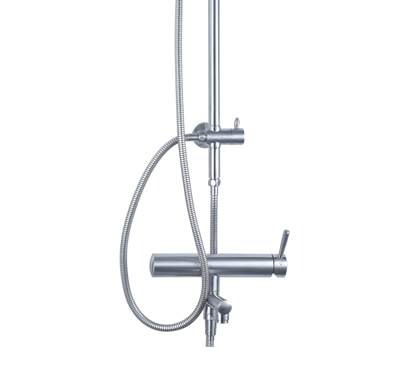 沐浴柱由不銹鋼整體壓鑄成型,簡潔時尚、結實耐用。上下呼應的斜角設計,讓您的浴室更具美感,又避免了金屬銳角對人體的意外碰撞,,彰顯人性關懷。