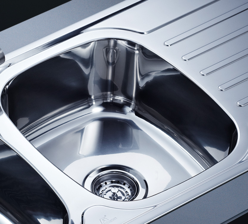 阿發水槽立邊采用國際先進的10-25°小R角一次成型拉伸技術,更具立體感與時尚潮流,亦能充分擴展水槽利用空間;一次成型拉伸技術,杜絕了焊接工藝易產生的水槽生銹,脫焊事故,充分保障水槽50年以上的使用壽命