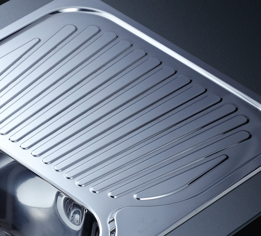 阿發水槽立邊采用國際先進的10-25°小R角一次成型拉伸技術,更具立體感與時尚潮流,亦能充分擴展水槽利用空間;一次成型拉伸技術,杜絕了焊接工藝易產生的水槽生銹,脫焊事故,充分保障水槽50年以上的使用壽命