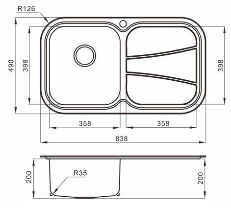 槽底采用斜面壓痕,四輻導流槽設計,與平面壓痕和無痕水槽相比,導水更為流暢,下水更迅速,能有效防止積水,消除沉淀物