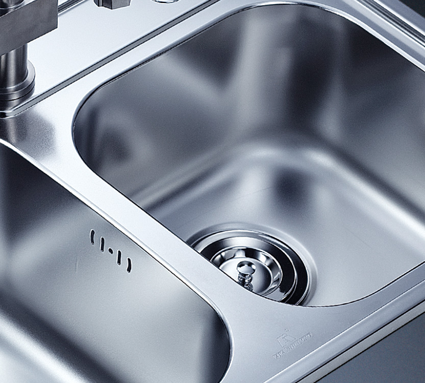 阿發(fā)水槽整體經(jīng)拉絲處理,質(zhì)地更加光滑,視覺更加柔和。能有效抵擋異物撞擊,刮傷及磨損,防止油污沾染,常用常新;柔和的光澤令水槽平添高雅氣質(zhì),更能避免鏡面材質(zhì)反射的光污染