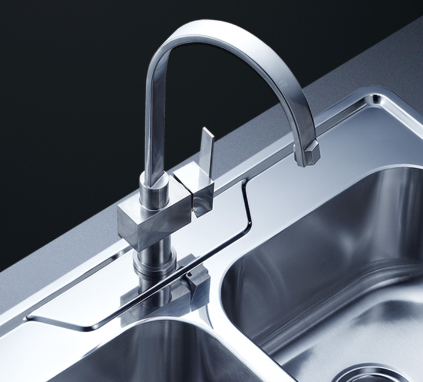 水槽四邊條采用一次成型的折彎加強筋工藝,雙倍堅固,承重力更強,解決了普通焊接工藝容易出現的凹點、脫焊、易割手等問題。專業配置的密封條和固定夾,安裝平整度高,不滲水,不松動