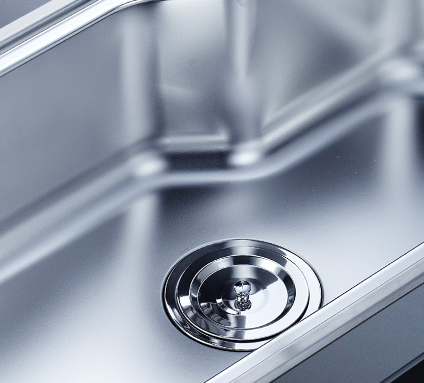 阿發水槽整體經拉絲處理,質地更加光滑,視覺更加柔和。能有效抵擋異物撞擊,刮傷及磨損,防止油污沾染,常用常新;柔和的光澤令水槽平添高雅氣質,更能避免鏡面材質反射的光污染