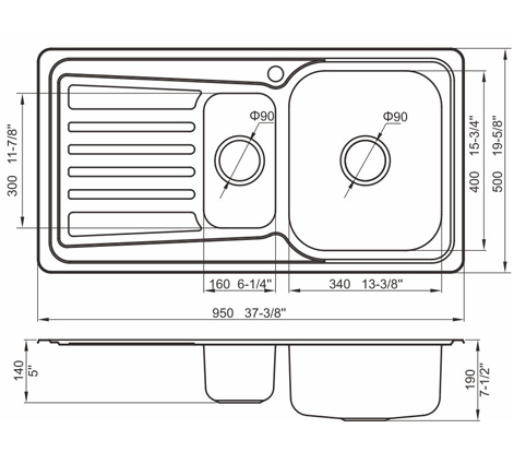 槽底采用斜面壓痕,四輻導(dǎo)流槽設(shè)計(jì),與平面壓痕和無(wú)痕水槽相比,導(dǎo)水更為流暢,下水更迅速,能有效防止積水,消除沉淀物