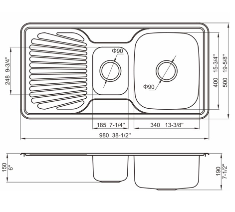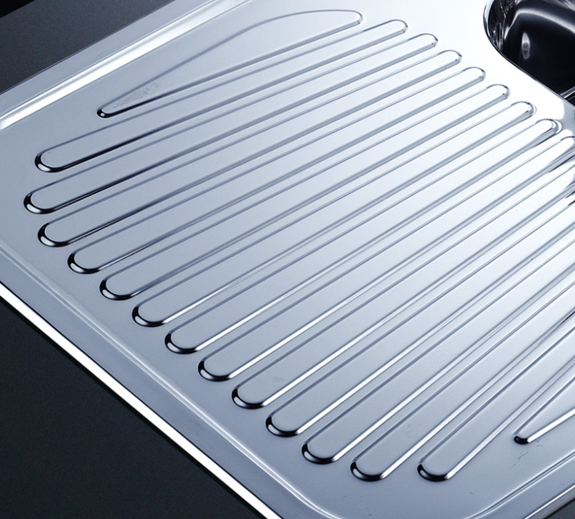 槽底采用斜面壓痕,四輻導(dǎo)流槽設(shè)計(jì),與平面壓痕和無(wú)痕水槽相比,導(dǎo)水更為流暢,下水更迅速,能有效防止積水,消除沉淀物