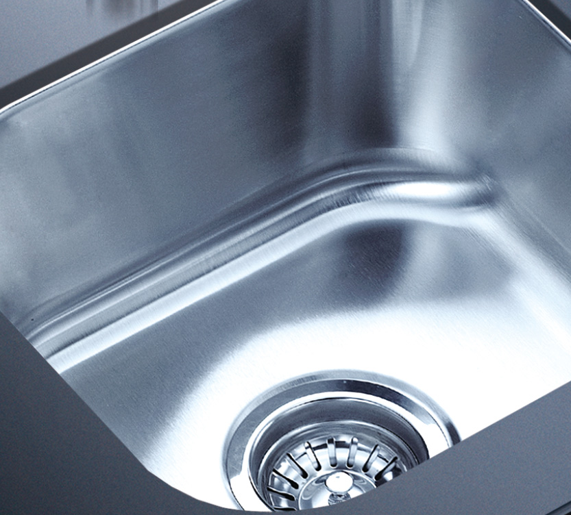 阿發水槽立邊采用國際先進的10-25°小R角一次成型拉伸技術,更具立體感與時尚潮流,亦能充分擴展水槽利用空間;一次成型拉伸技術,杜絕了焊接工藝易產生的水槽生銹,脫焊事故,充分保障水槽50年以上的使用壽命