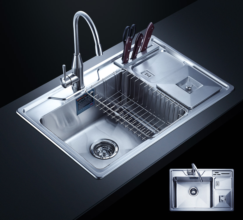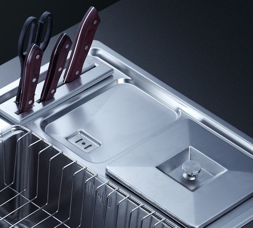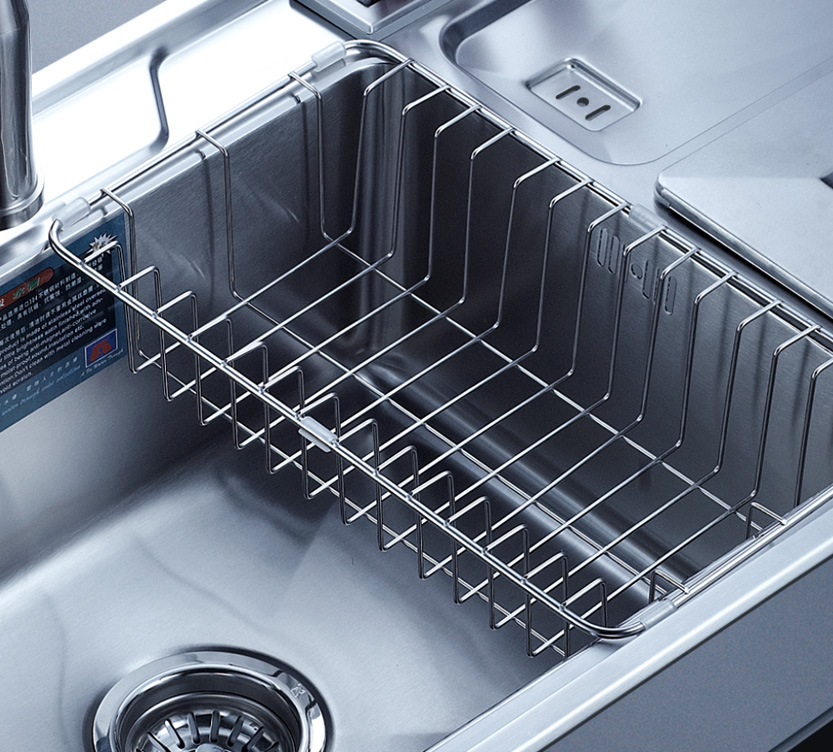 水槽四邊條采用一次成型的折彎加強筋工藝,雙倍堅固,承重力更強,解決了普通焊接工藝容易出現的凹點、脫焊、易割手等問題。專業配置的密封條和固定夾,安裝平整度高,不滲水,不松動