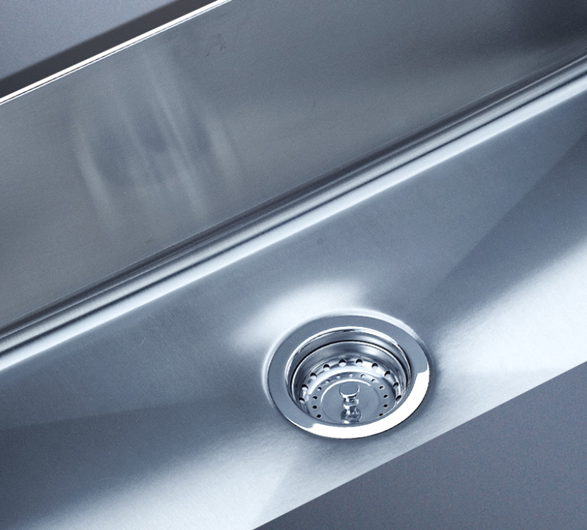 槽底采用斜面壓痕,四輻導流槽設計,與平面壓痕和無痕水槽相比,導水更為流暢,下水更迅速,能有效防止積水,消除沉淀物