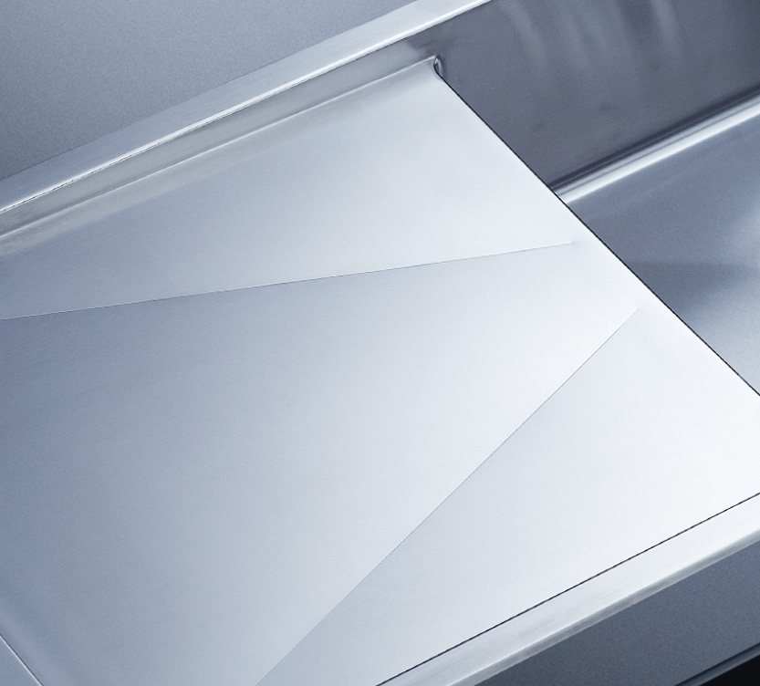 槽底采用斜面壓痕,四輻導(dǎo)流槽設(shè)計,與平面壓痕和無痕水槽相比,導(dǎo)水更為流暢,下水更迅速,能有效防止積水,消除沉淀物