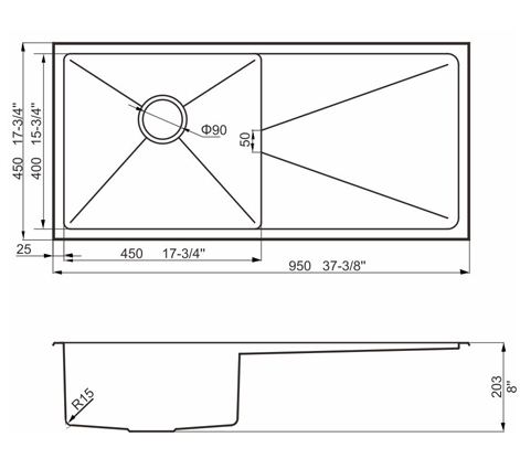 阿發(fā)水槽立邊采用國際先進的10-25°小R角一次成型拉伸技術(shù),更具立體感與時尚潮流,亦能充分擴展水槽利用空間;一次成型拉伸技術(shù),杜絕了焊接工藝易產(chǎn)生的水槽生銹,脫焊事故,充分保障水槽50年以上的使用壽命