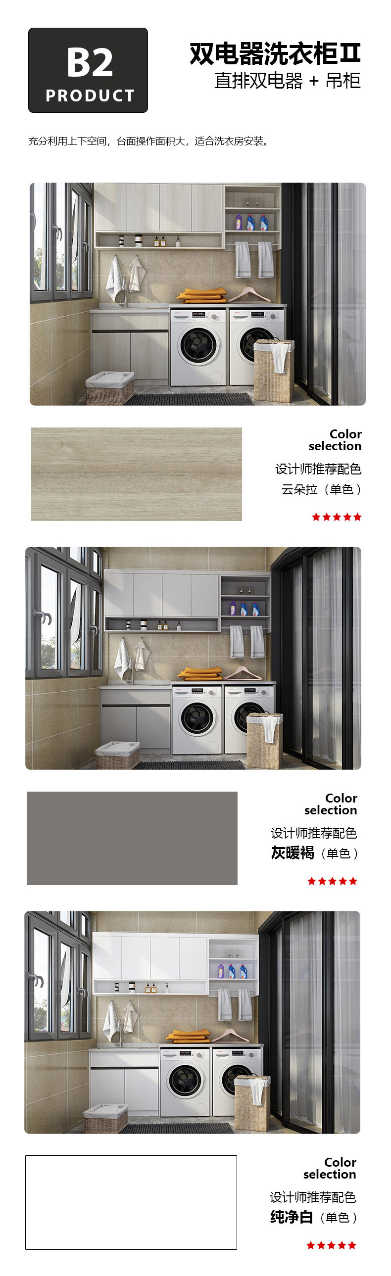 B2-橫排雙電器+吊柜(不銹鋼陽臺洗衣柜)